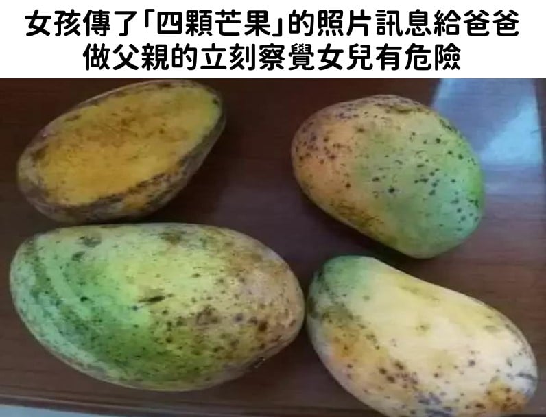 一張水果的照片卻救了她一命! 某次,李先生收到來自女兒的簡訊,訊息裡頭有三張照片,每張照片都是四個芒