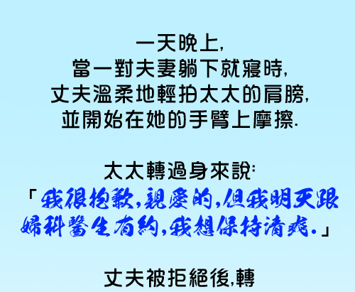 . 小明的關係總是沒有處理好 那方面生病了 西醫說 這治不好了 一定要切掉 於是小明決定看中醫 中醫