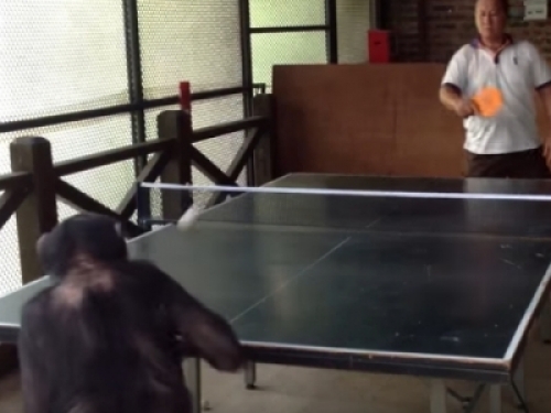 先前曾有研究指出,黑猩猩的聰明程度是動物界中僅次於人類最高的,國外有隻黑猩猩與人類比賽打桌球,前