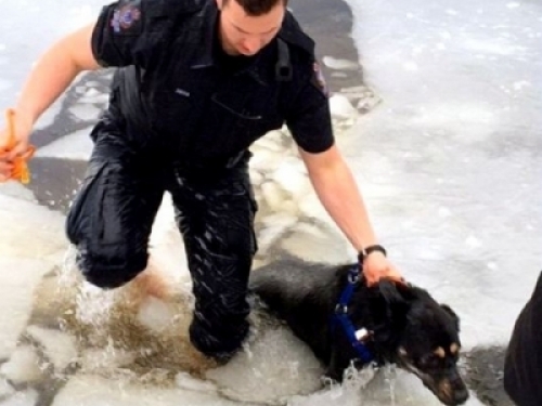 在溫哥華就有一隻狗狗,因為追逐他的玩具球跑到結了薄冰的湖面上,一不小心就跌進了湖裡!有人報警後,