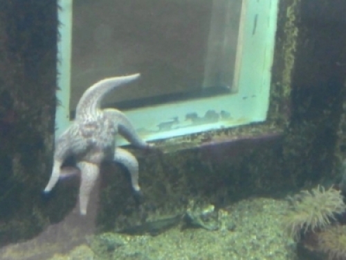 有網友拍到一張海星「坐」在水族箱玻璃窗前的照片,看起來就好像一位憂鬱的大叔,照片一PO出就引起網