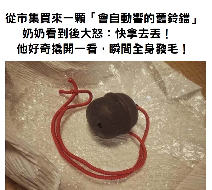 日本網友日前買了一顆鈴鐺,模仿多啦A夢把鈴鐺掛在脖子上,但祖母看到後大怒,要他把鈴鐺丟掉。網友好奇想